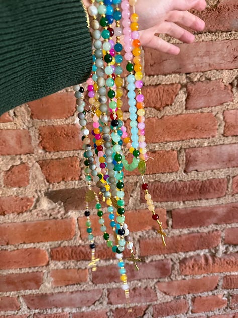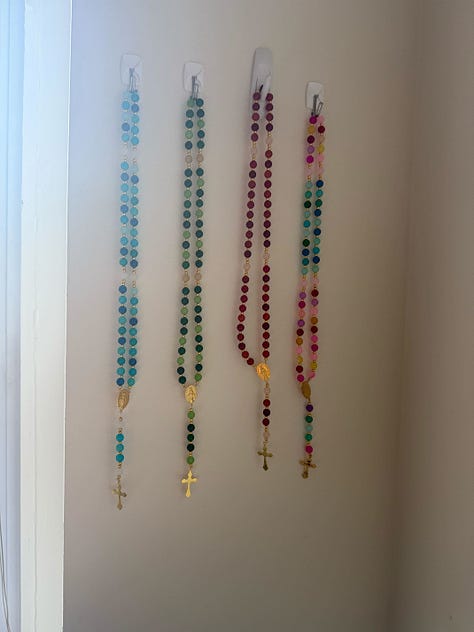 October is the month of the Rosary AND Pope Leo has asked us to pray the Rosary daily for peace. On Saturday, I hosted a “rosary brunch” and invited friends over to make our own rosaries and then pray together. They turned out SO beautifully, and now this is my new favorite hobby. I bought the beads on Amazon here and the miraculous medals/crucifixes also on Amazon, here.
