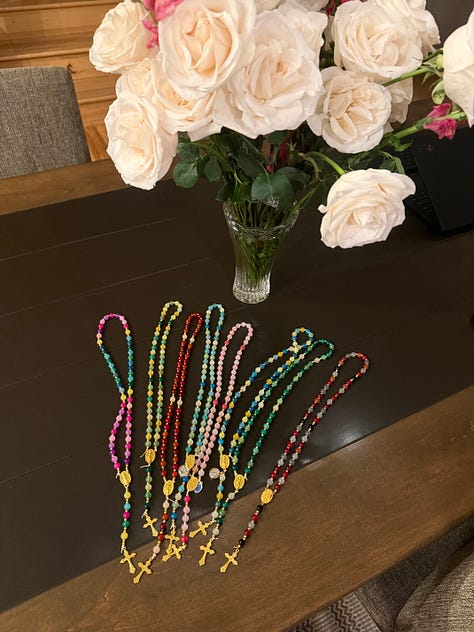 I’ve been a rosary-making fiend for the past few months (and yes—I’m still backlogged on orders; they are coming!). It’s been such a joy to make rosaries for my friends: they’re beautiful, and I get to pray for them while creating a gift. I love using my hands—whether it’s cooking, crafting, painting, or playing piano. It’s when I feel most human.