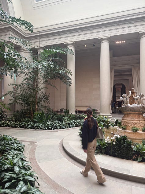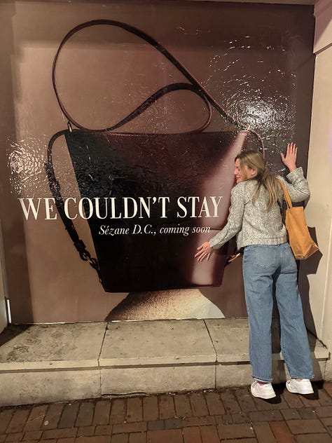 A few weeks ago, I was dreaming of a day in Paris and realized that I could experience many of my favorite Parisian things in my own backyard (DC, after all, was designed by a Frenchman)!! So on Saturday morning, I gathered my friends for a “Paris day” in DC — complete with neck scarves, an authentic Parisian cafe stop, and French Impressionism at the National Gallery of Art. One of the best surprises was walking through Georgetown and discovering that Sezane is returning to DC (iykyk!). We had so much fun — and I cannot wait to do it again! It was such a great reminder to be a tourist in my beautiful home. Tres chic!